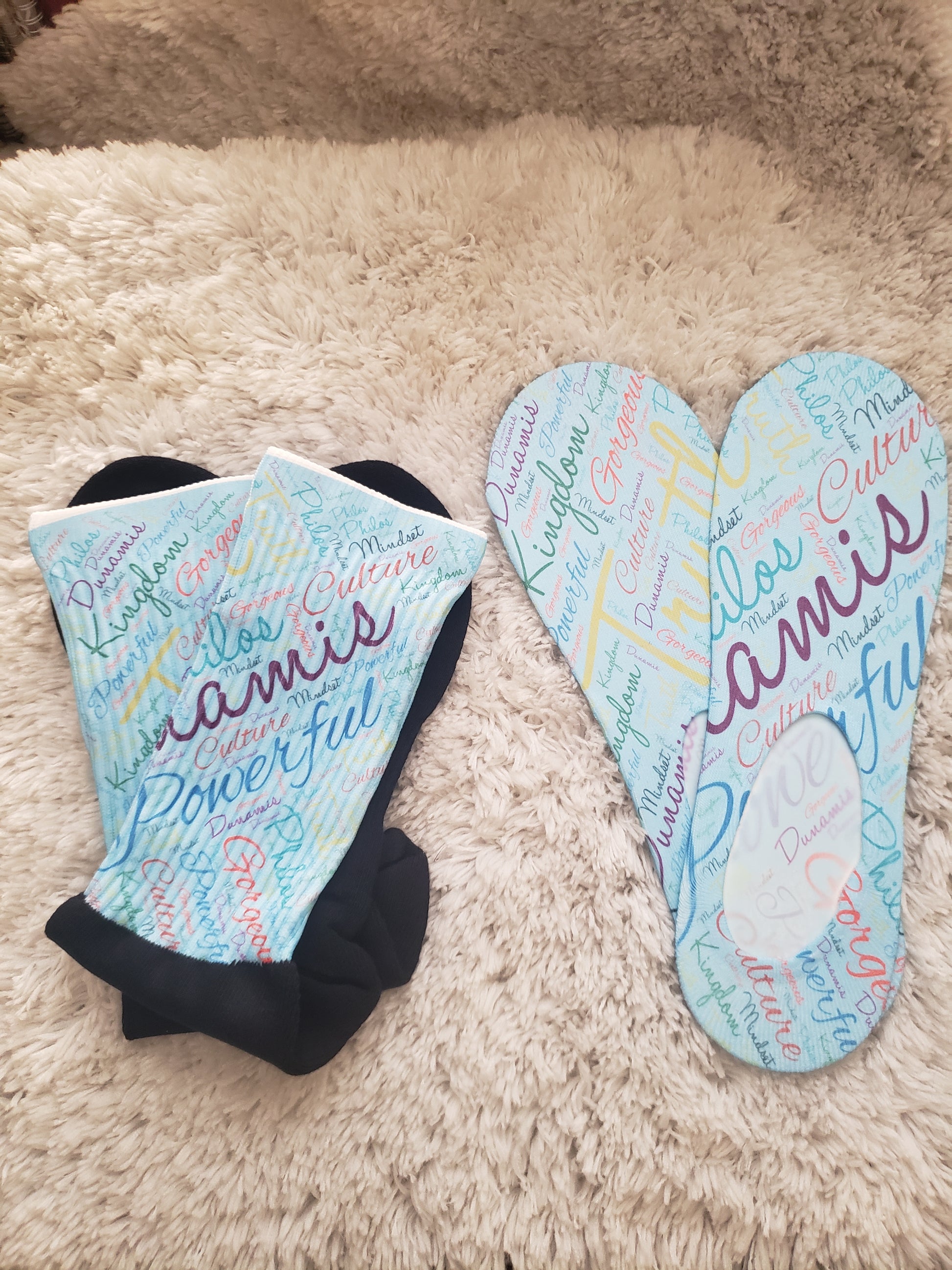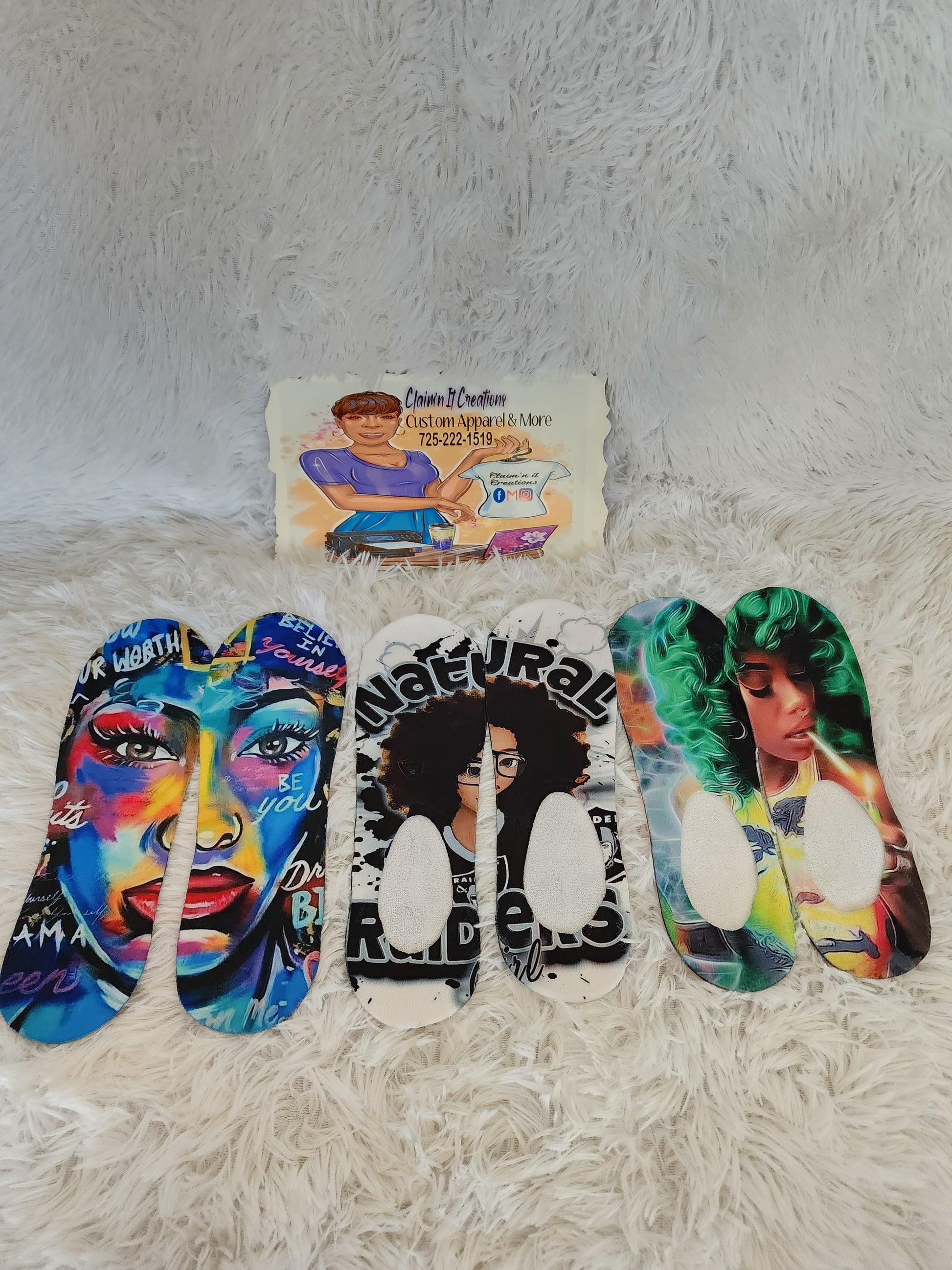 Custom Socks, 100% Polyester soft to the touch. Hugs your feet. Comfort feel. Any design you desire.