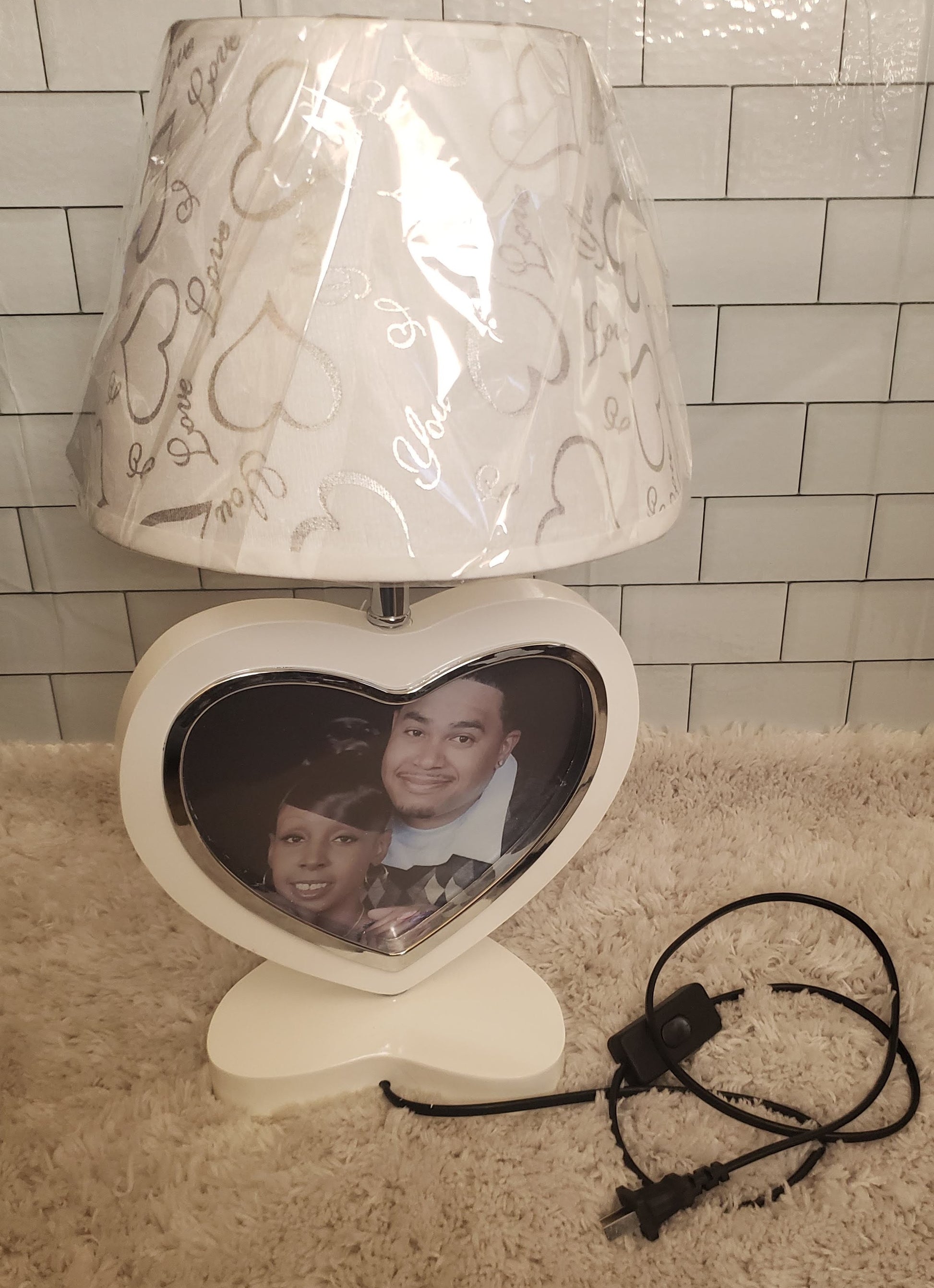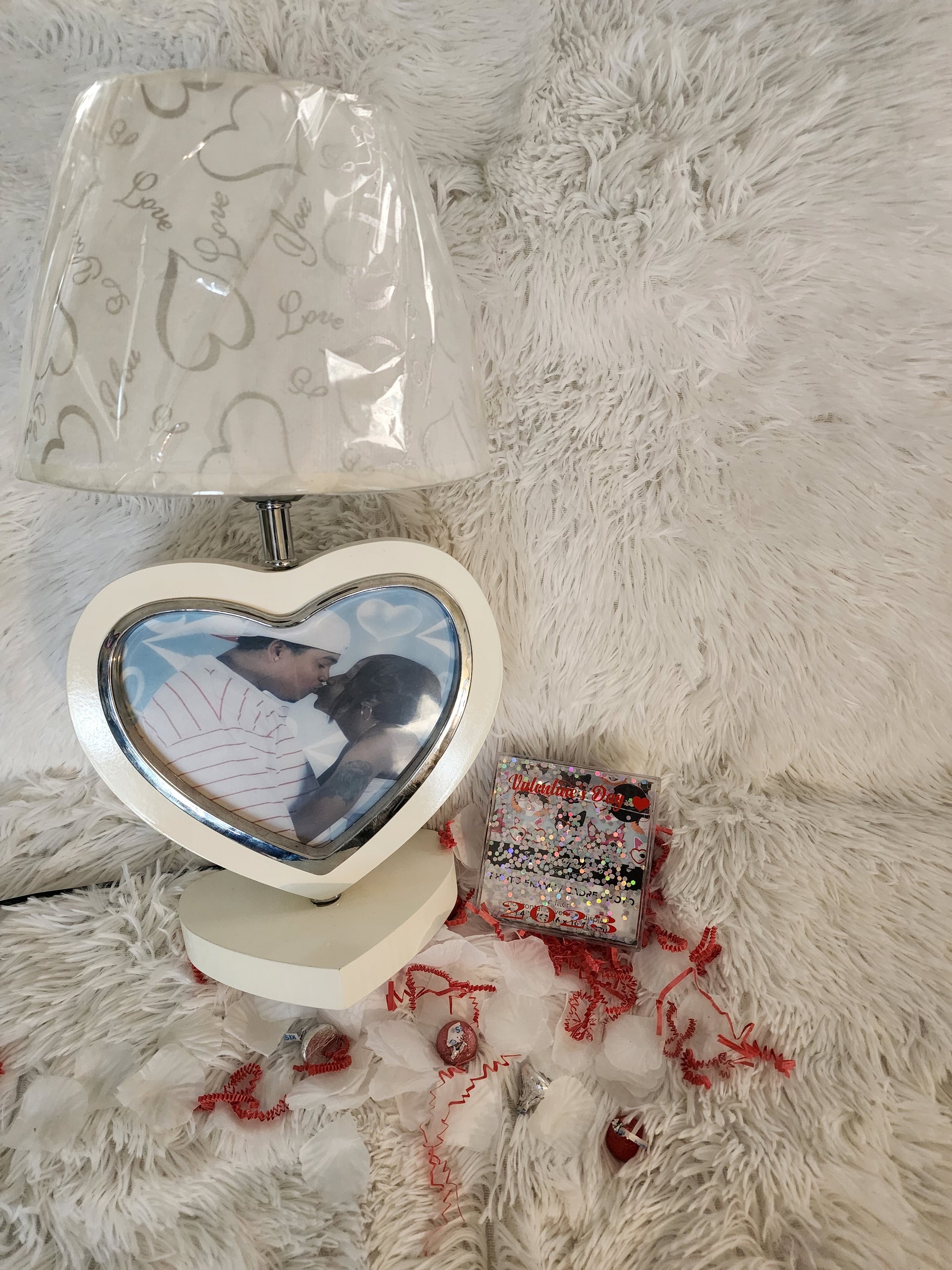 Heart shape Love Lamp- Can customize with 2 pictures one on each side. Material is wood. Paint color is White, Voltage. 220V/110V. (Light bulb note included)