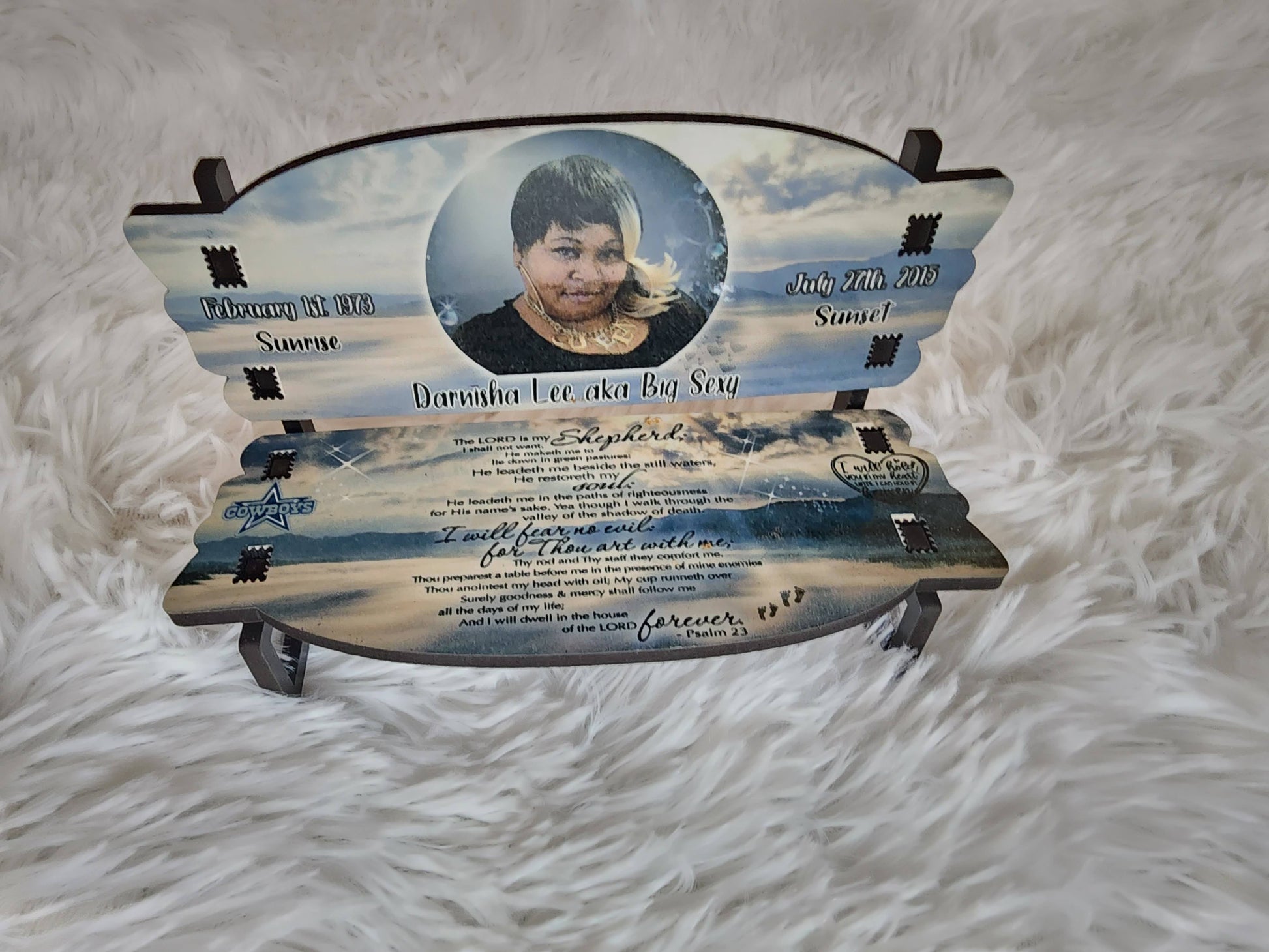 Honor your loved one’s memory with this beautifully crafted 7-inch memorial bench, customizable with a cherished photo, heartfelt poem, or personal saying to keep their spirit close. This unique four-piece keepsake offers a comforting way to celebrate someone you can no longer call every day, letting their memory live on in a meaningful, one-of-a-kind tribute.